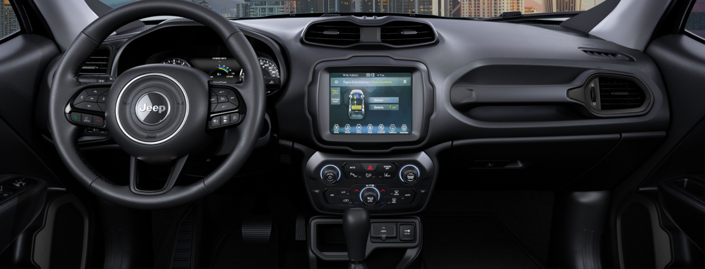 Az új Jeep® Renegade e-Hybrid belterének formatervezési filozófiája három alappillére épül: tágasság, kényelem és stílus. Az utastér tágas, variálható és csalogató, a műszerfalat a Uconnect™ infotainment rendszer akár 8,4”-os érintőképernyője és a 7”-os digitális óracsoport uralja. Mindezt a prémium minőségű, puha tapintású burkolatok és üléshuzatok egészítik ki.